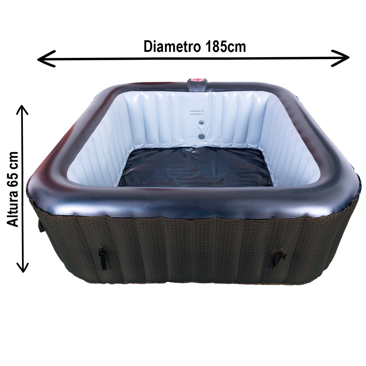 - Características excepcionales: 130 chorros de aire, bomba y sistema de calefacción integrados, diseño duradero, fácil manejo, portabilidad y protección contra heladas.