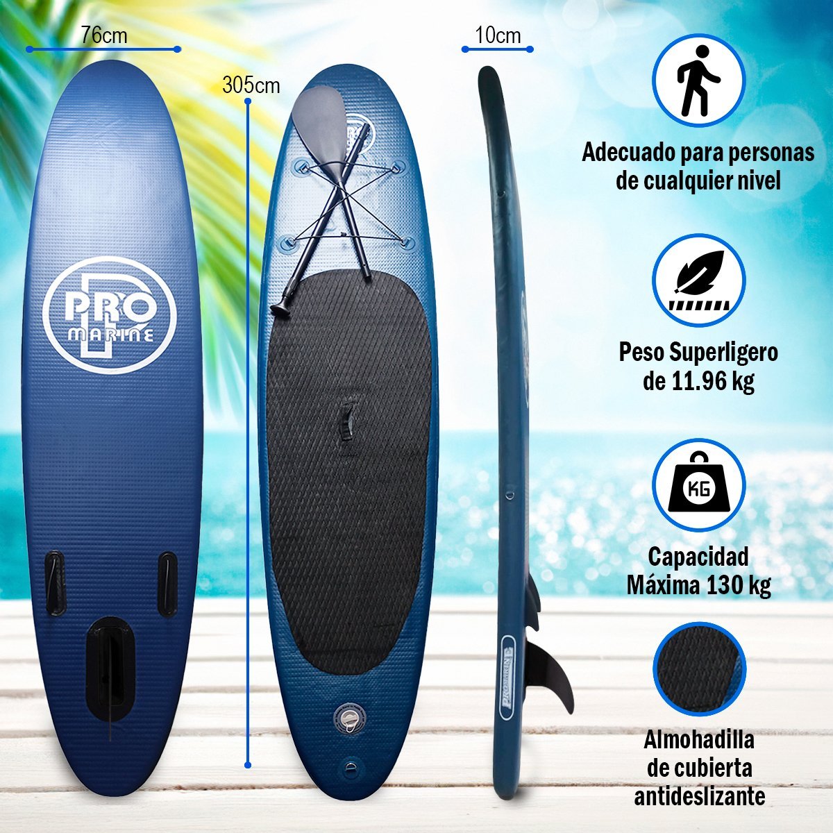 | Peso máximo recomendado | Menos de 50 kg: tabla extremadamente estable. Entre 50 y 80 kg: tabla muy estable. Más de 80 kg: tabla ideal para empezar a practicar fácilmente. Peso máximo: 120 kg |